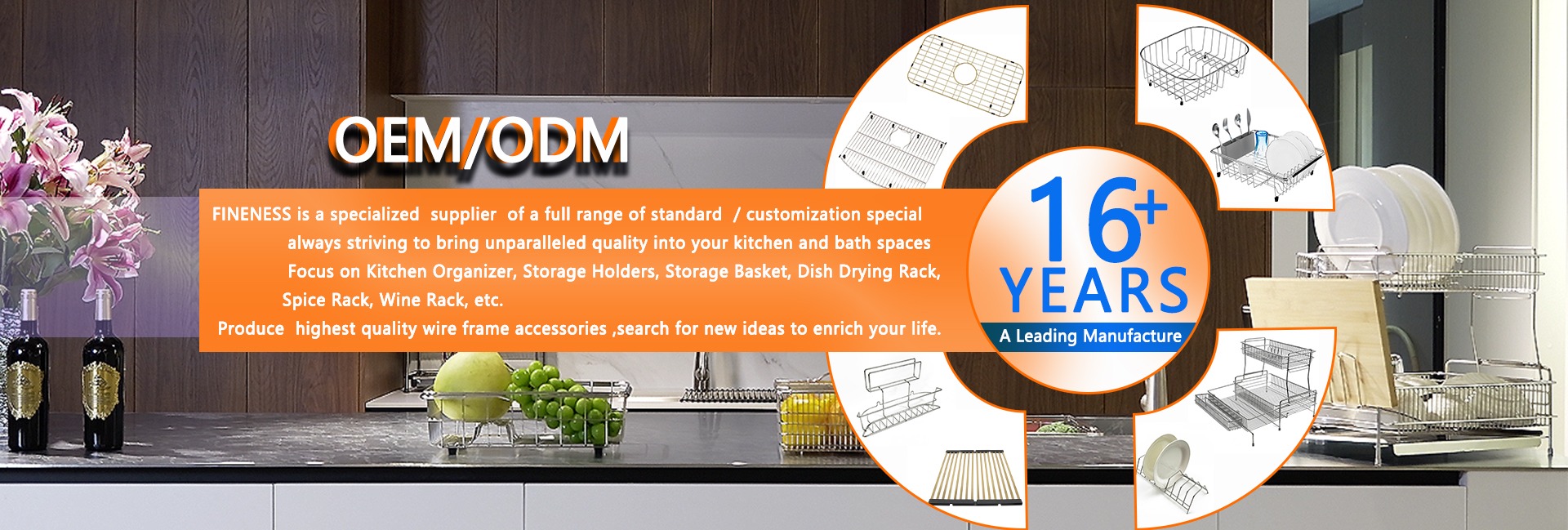 FINENESS focus on Kitchen Organizer, Storage Holders, Storage Basket, Dish Drying Rack, Spice Rack, Wine Rack, etc. We produce the highest quality wire frame accessories and provide excellent service.